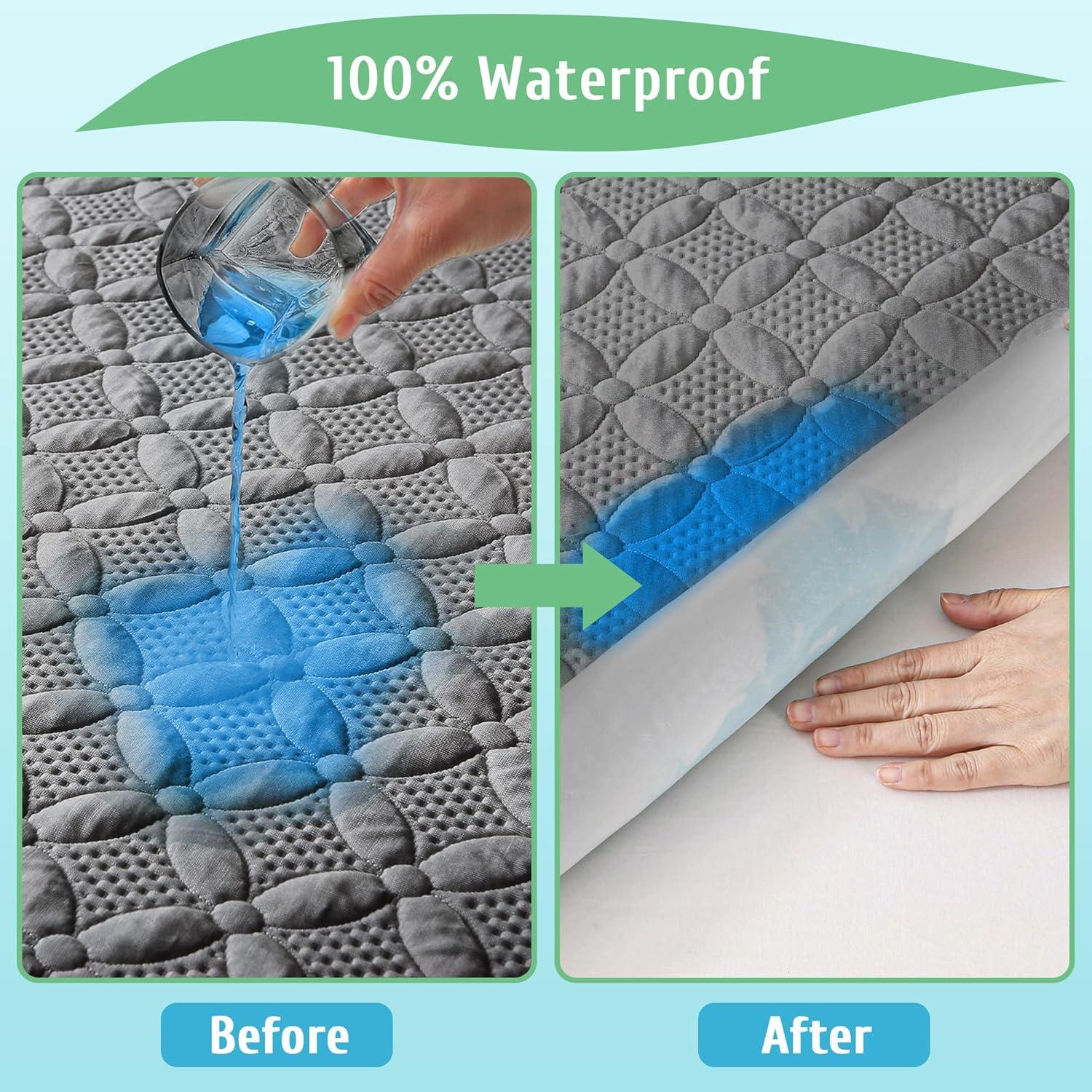 Lunsing Waterproof King Mattress Protector, Soft Breathable and Noiseless King Size Mattress Pad Cover with 6-18 in Deep Pockets(Gray)